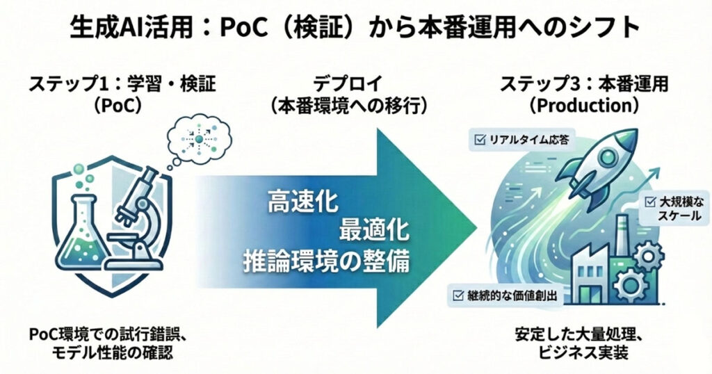 利用者はインスタンスタイプやオートスケーリング、同時実行数などを設定しながら 本番環境向けに推論をスケール可能とされている。このリリースは生成AIがPoC段階から実運用段階へ進み、企業が独自モデルを構築して運用する基盤が整いつつあることを示している。