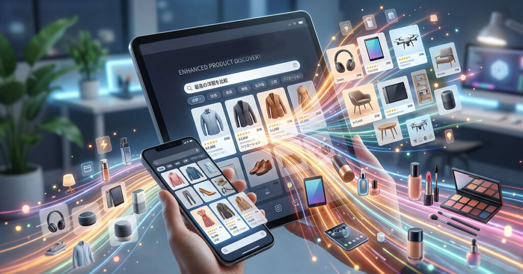 あわせて、Shopify Catalog や Walmart を含むマーチャント連携も進めており、生成AIが単なる検索補助にとどまらず、プロダクトディスカバリーや比較検討の主要なインターフェースへと進化しつつあることがうかがえる。